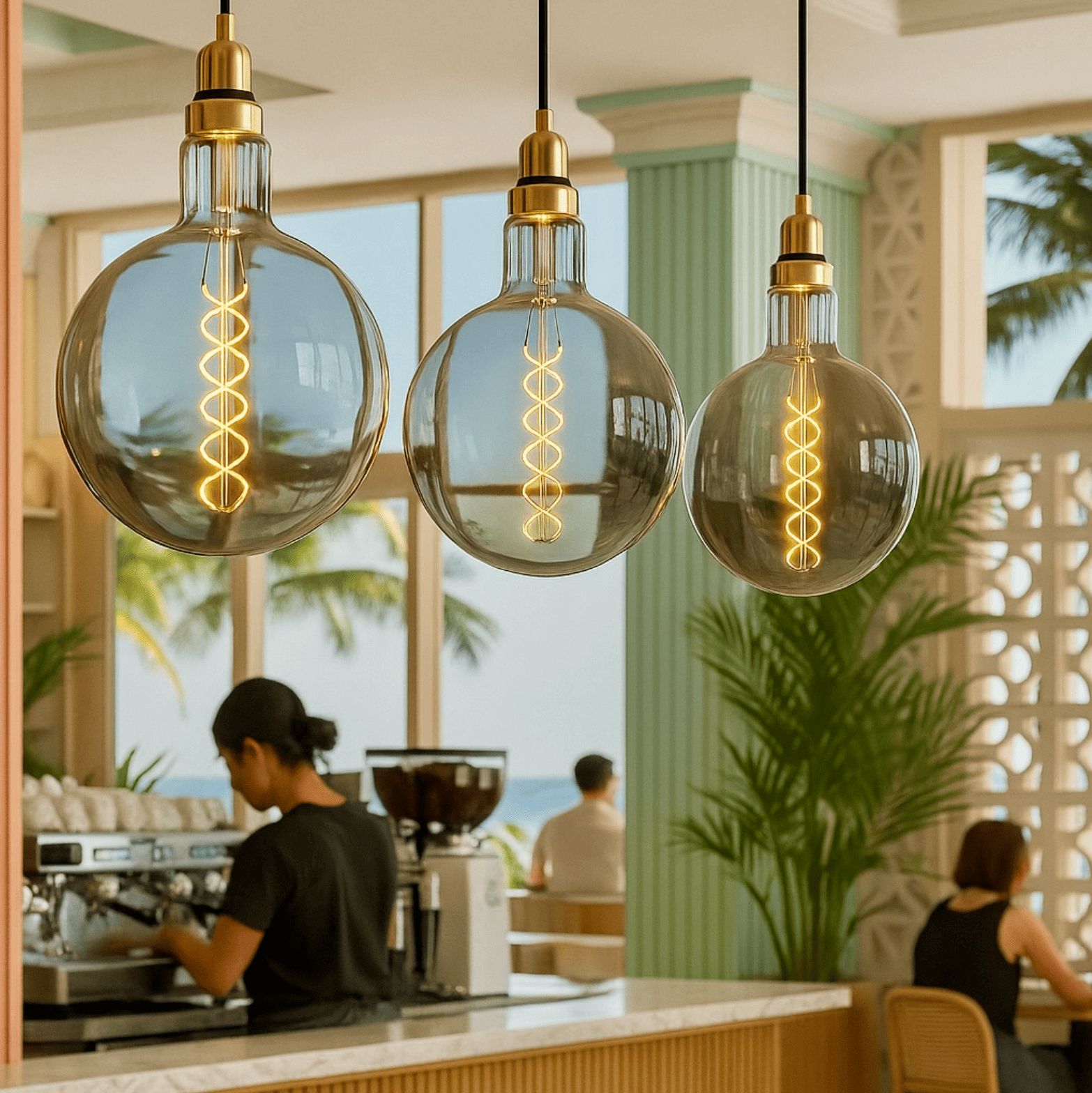 LUXEL bulbs deliver soft, flicker-free light that’s easy on the eyes and perfect for both homes and cafés.